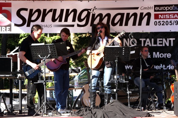 Frontansicht vom Nissan Juke Eine Band auf der Bühne während der 75-Jahrfeier Gäste und Besucher auf der 75-Jahrfeier Gäste und Besucher auf der 75-Jahrfeier bei gutem Wetter Alleinunterhalter auf der 75-Jahrfeier Zeitungartikel zum 75-Jährigen Firmenjubiläum